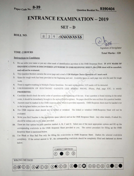 Previous Year Entrance Paper – Jamia Millia Islamia.