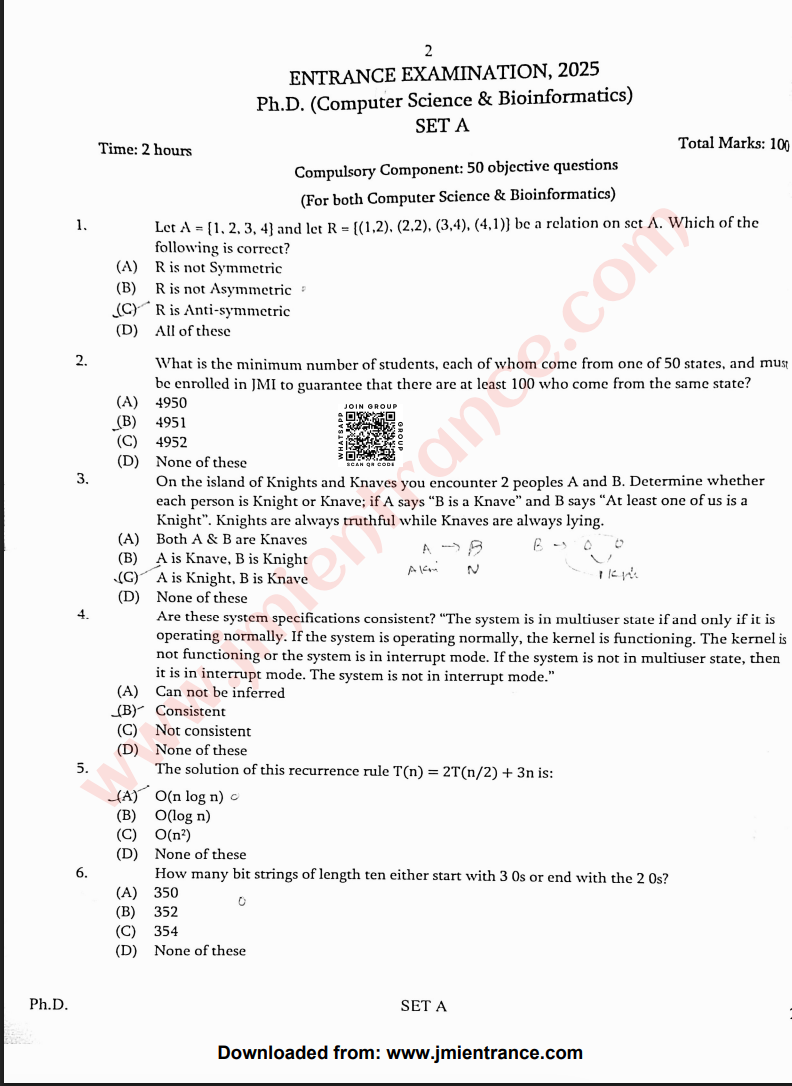 Question Paper Set: SET A (All Sets are same)